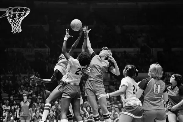 But the catch was that Kyvallos and her peers were viewed by the general public as something of a parlor trick. She and her teammates took their basketball seriously but the belief of the time was that women’s sports was a recreational activity. The idea that it could be more than that had been fought tooth and nail for decades, mostly in the 1930’s by the Women’s Division of the National Amateur Athletic Foundation. Through most of that era, New York remained an enclave where competitive basketball was still an option for school-age girls. Other states, like Ohio and Kentucky, weren’t so lucky as bans on interscholastic competition lasted until the federal implementation of Title IX in 1972. Those kinds of inconsistencies created problems with how to address women’s basketball as a viable professional product at home and abroad.